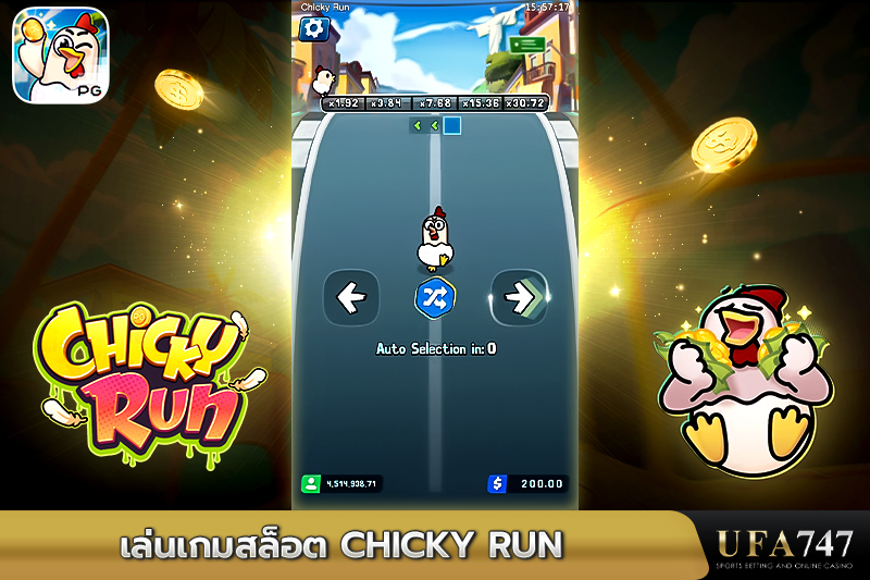 ทดลองเล่นสล็อต Chicky Run เกมเล่นแนวใหม่จาก PG สล็อต ที่แตกต่างจากสล็อตทั่วไป ผู้เล่นต้องเลือกทิศทางให้ไก่วิ่งหลบยานพาหนะ โดยสามารถเลือก ซ้าย, ขวา หรือ สุ่ม หากเลือกถูกต้อง ไก่จะรอดจากการชนและได้รับ ตัวคูณโบนัส ที่เพิ่มขึ้นทุกครั้งที่เล่นสำเร็จ เกมนี้ได้รับความนิยมอย่างรวดเร็วเนื่องจากระบบการเล่นที่เรียบง่ายแต่น่าตื่นเต้น