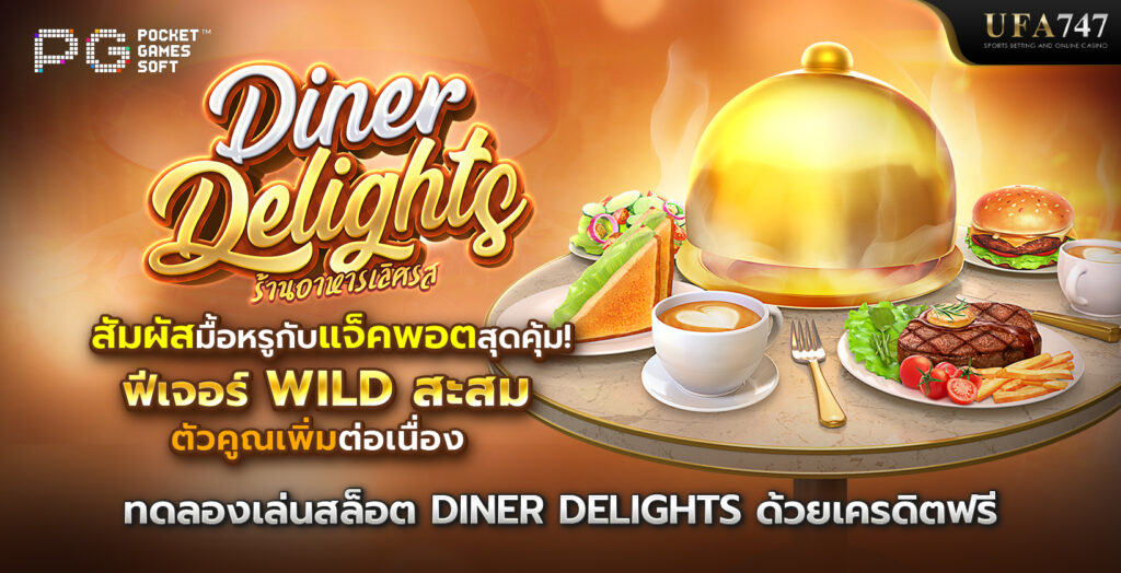 Diner Delights เป็นเกมสล็อตออนไลน์จากค่าย PG Slot ที่นำเสนอธีมร้านอาหารสุดหรู พร้อมด้วยอาหารจานเด็ด บรรยากาศที่น่าดึงดูดใจ ตัวเกมออกแบบมาเพื่อมอบประสบการณ์การเล่นที่สนุกสนาน เต็มไปด้วยโอกาสในการชนะรางวัล รูปแบบการเล่นของเกมสล็อต Diner Delights เป็นแบบ 6 รีล 6 แถว โดยมีฟีเจอร์เด่นที่ช่วยเพิ่มโอกาสชนะ เช่น Cascade Feature ซึ่งช่วยให้สัญลักษณ์ที่ชนะถูกลบออก แทนที่ด้วยสัญลักษณ์ใหม่ ทำให้ผู้เล่นสามารถชนะต่อเนื่องในรอบเดียวได้ นอกจากนี้ยังมีฟีเจอร์พิเศษที่มาพร้อมตัวคูณโบนัส (Multiplier) ที่เพิ่มขึ้นเรื่อย ๆ